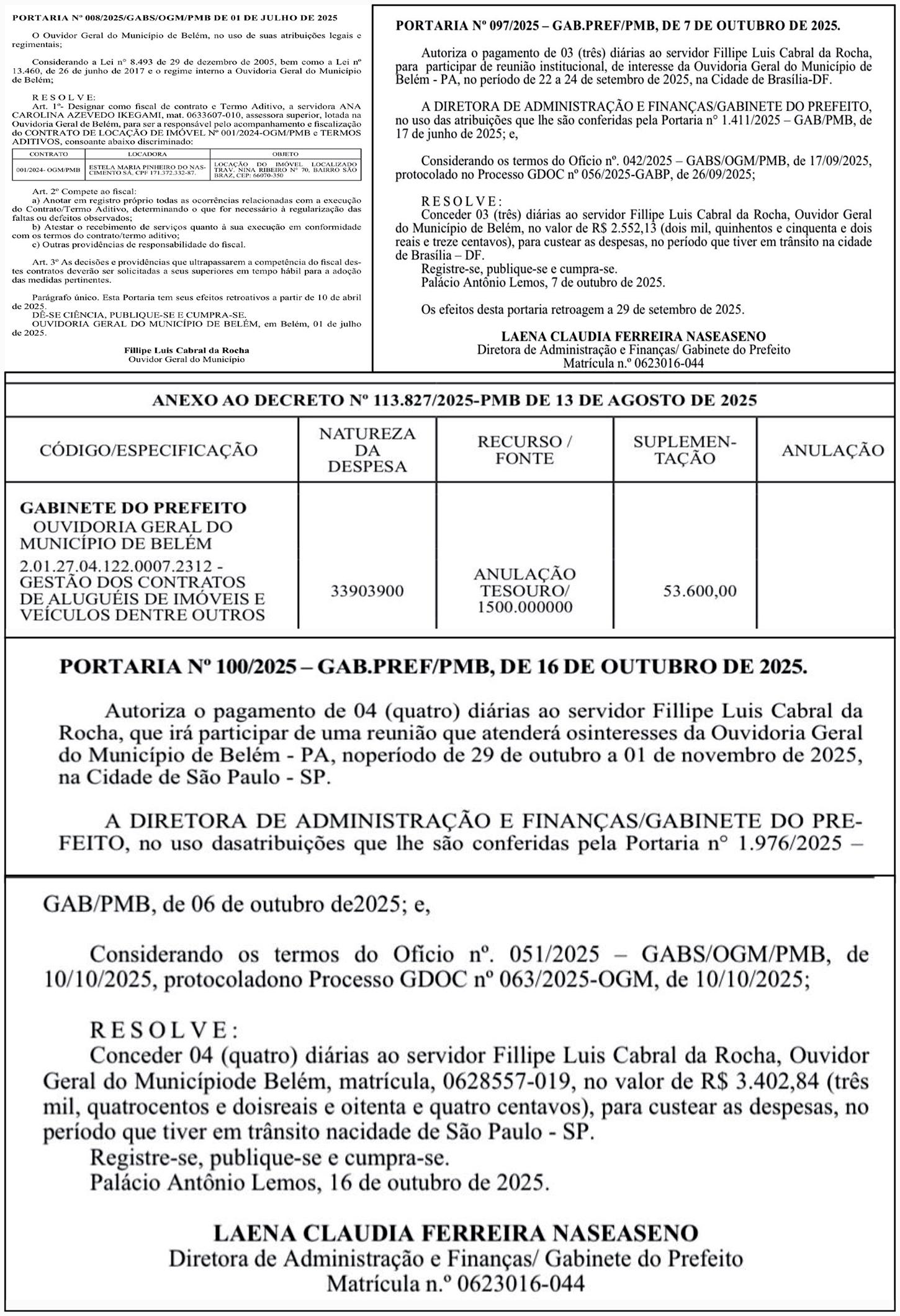 Uma denúncia encaminhada à Coluna Olavo Dutra aponta que o ouvidor também se tornou frequentador assíduo de viagens oficiais. Em setembro, recebeu três diárias, totalizando R$ 2.552,13, para compromissos em Brasília. Em outubro, mais quatro diárias, no valor de R$ 3.402,84, para São Paulo.