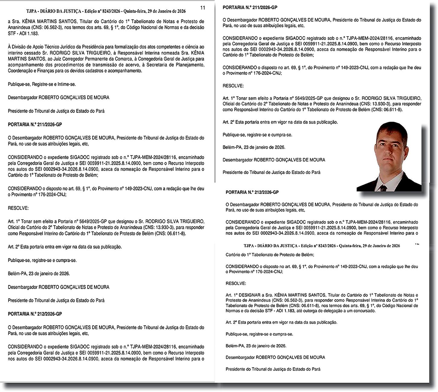 Ao analisar a petição, o presidente do Tribunal de Justiça, desembargador Roberto Moura, optou por rever a designação. Com isso, Kênia Martins Santos assumiu a interinidade do Cartório de Protestos de Belém, enquanto Rodrigo Trigueiro voltou a responder exclusivamente pelo 2º Tabelionato de Notas e Protestos de Ananindeua.
