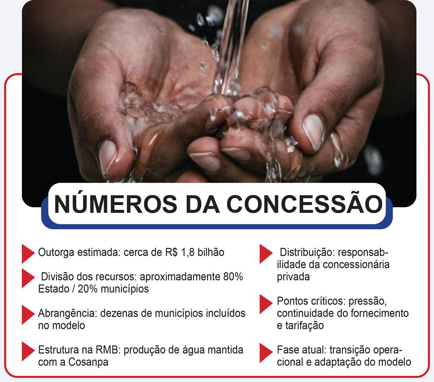 O pano de fundo é o modelo de concessão implantado em 2025 pelo governo estadual, que transferiu à iniciativa privada a operação de serviços de água e esgoto em diversos municípios.