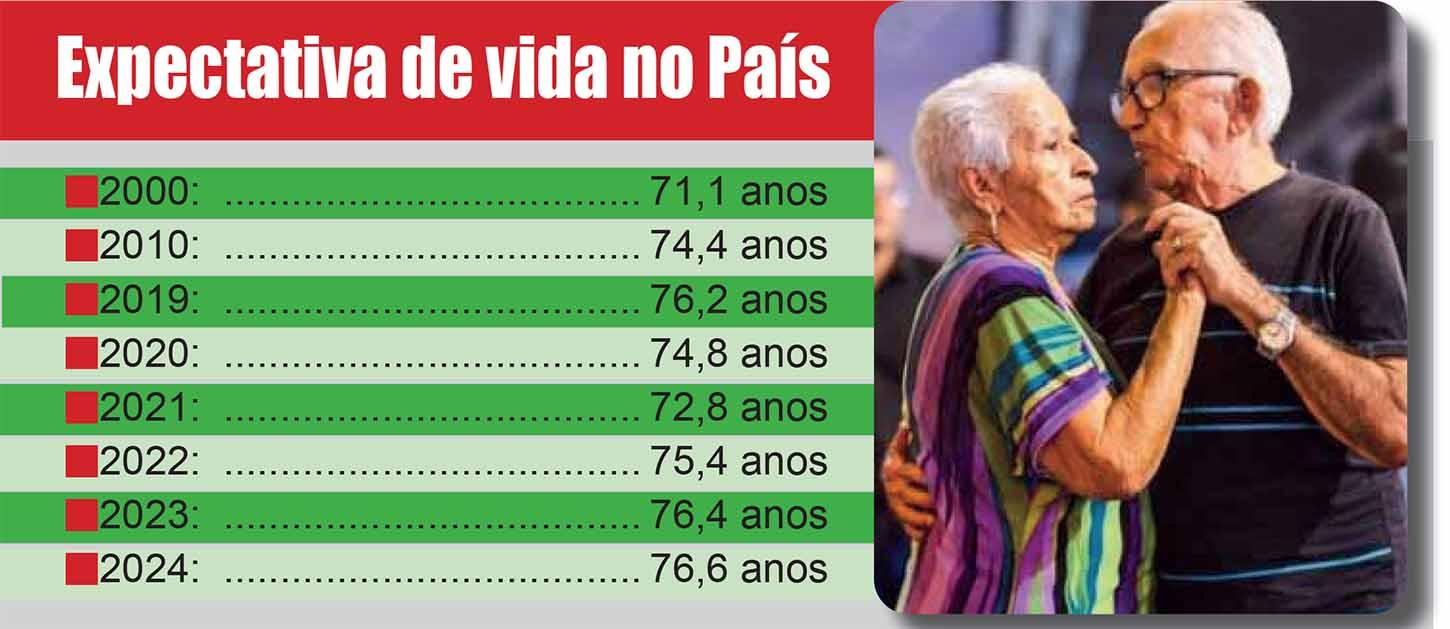 O IBGE aponta que, de uma maneira geral, a expectativa do brasileiro tem trajetória de crescimento. A exceção foi durante a pandemia de covid-19. Em 2019, quem nascia esperava viver 76,2 anos, patamar que foi reduzido para 72,8 anos em 2021.